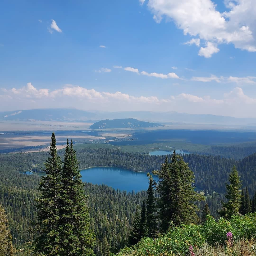 De retour dans la verdure, les forêts et au bord des lacs, ils traversent Grand Teton National Park « 3 énormes montagnes plantées au milieu de plaines dotées d’une faune et d’une flore incroyables ! On a vu deux ours, des cerfs et des biches, des perdrix, une marmotte, plein de papillons et d’insectes (on n’est plus trop habitués à autant d’insectes en France). Et pour ceux qui se posent la question, oui le nom de ce parc parle bien de tétons ! Ce sont les trappeurs français qui étaient dans la région au 19ème siècle (oui tu sais la Louisiane française tout ça tout ça), qui ont donné aux 3 montagnes le nom de 3 tétons, parce qu’elles ressemblaient à 3 seins au milieu des plaines. Ils devaient être en rut. Et comme dirait si bien Mag : « encore une histoire de boobs » raconte Nathalie.