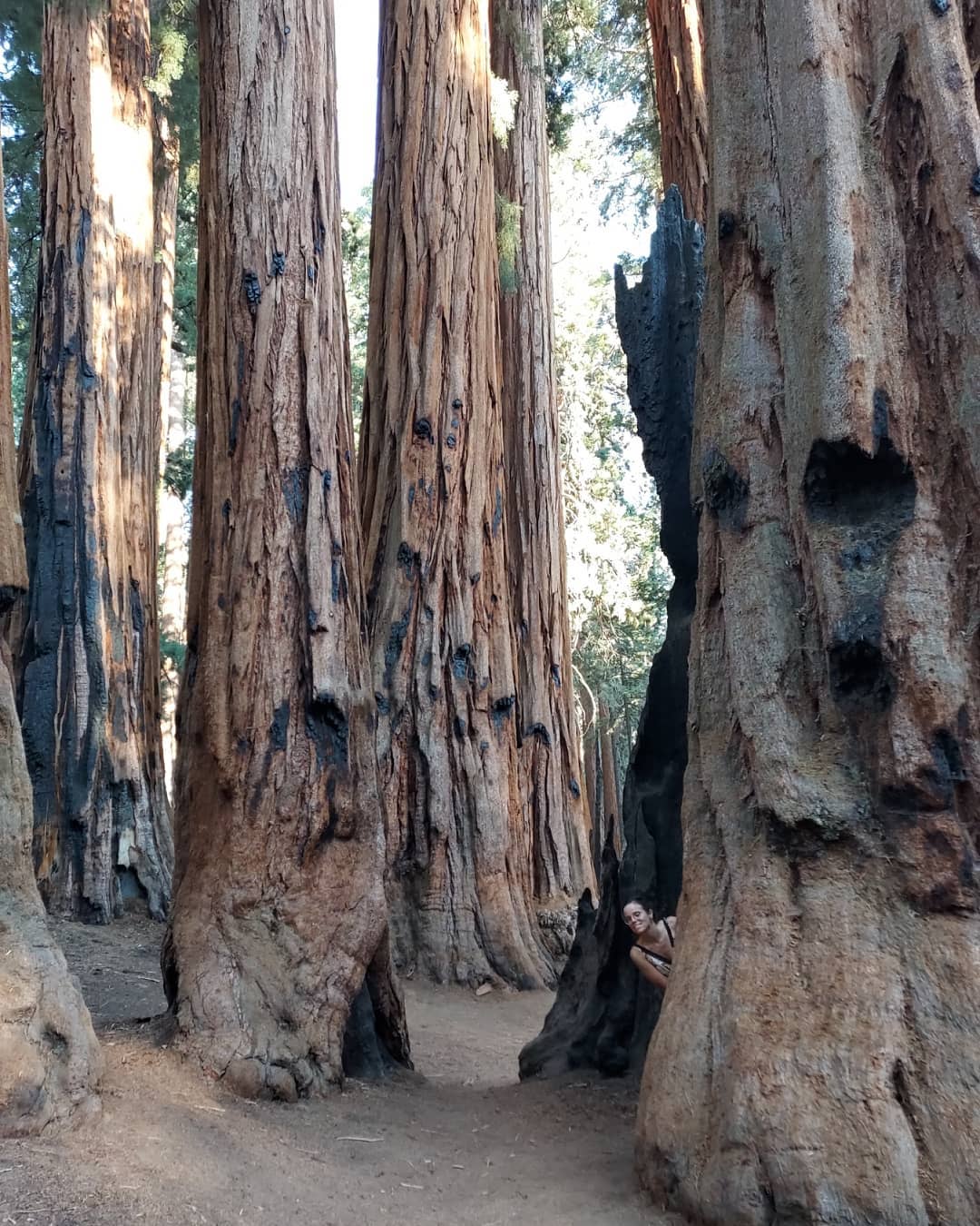 Ils découvrent ensuite la forêt peuplée des arbres les plus nobles et les plus vieux du monde : les séquoias. « Leurs immenses troncs parfaitement droits, d’un marron éclatant et vieux de milliers d’années nous font réaliser combien nous sommes jeunes et petits. Grâce à la résine ultra résistante de leur tronc, ils peuvent résister à tous les aléas de la nature, depuis les intrusions des animaux et du lichen, jusqu’aux incendies de forêts » commente Nathalie sur son compte Facebook.