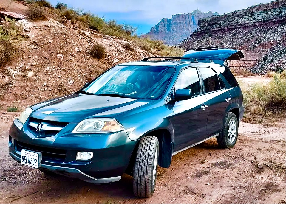 « Ce sont en effet plus de 60 nuits que nous avons passé à l’arrière de cette belle Acura MDX alors que les hôtels, même les plus pourris et paumés, ne coûtaient pas moins de $120 la nuit (et on n’en parle pas dans les grandes villes) et que Couchsurfing était déserté à cause du Covid. Entre nuits passées dans les parkings des Walmarts, les stations essence Pilot Center, camouflés dans les petites rues résidentielles des villes ou encore en pleine nature au milieu de paysages magnifiques… les nuits ont été variées ! Sans parler du fait qu’on était dans les déserts du Midwest en pleine période de canicule donc certaines nuits ont été chaudes ! Merci à notre mini ventilateur USB que l’on branchait à notre powerbank, il nous a sauvé plusieurs fois la mise. Et pour ceux qui se demandent comment on se douchait :