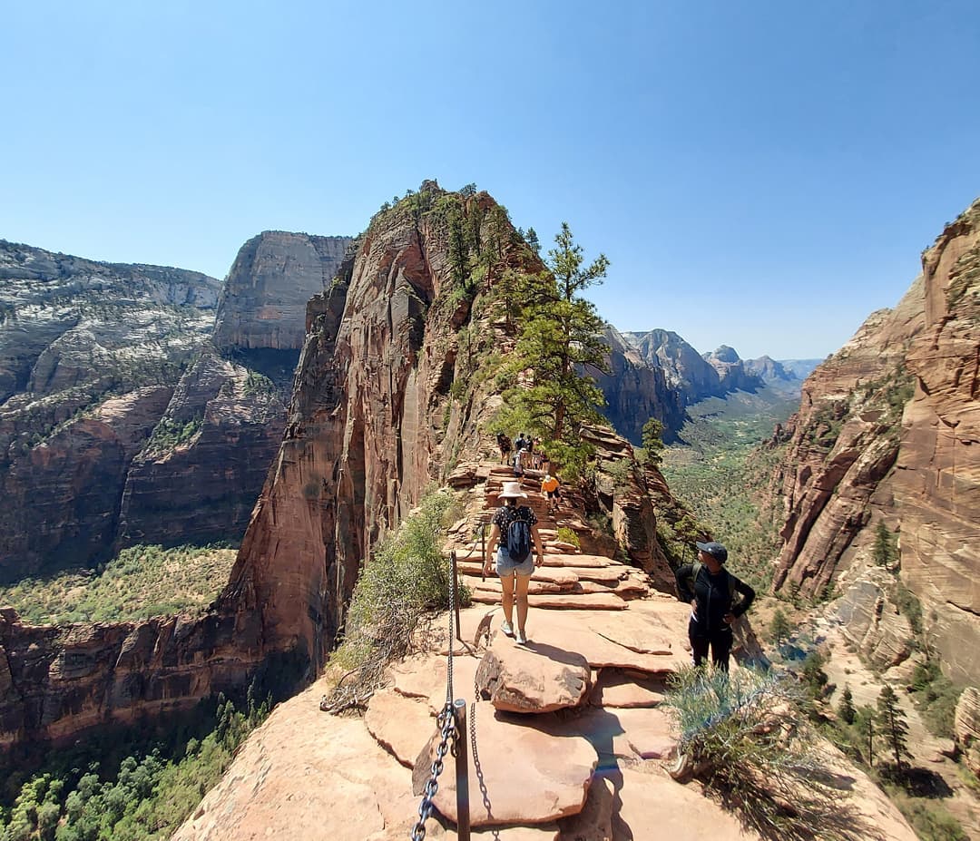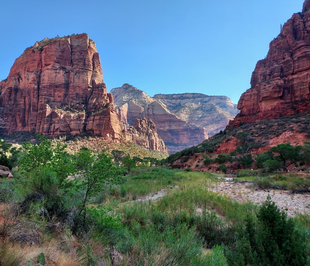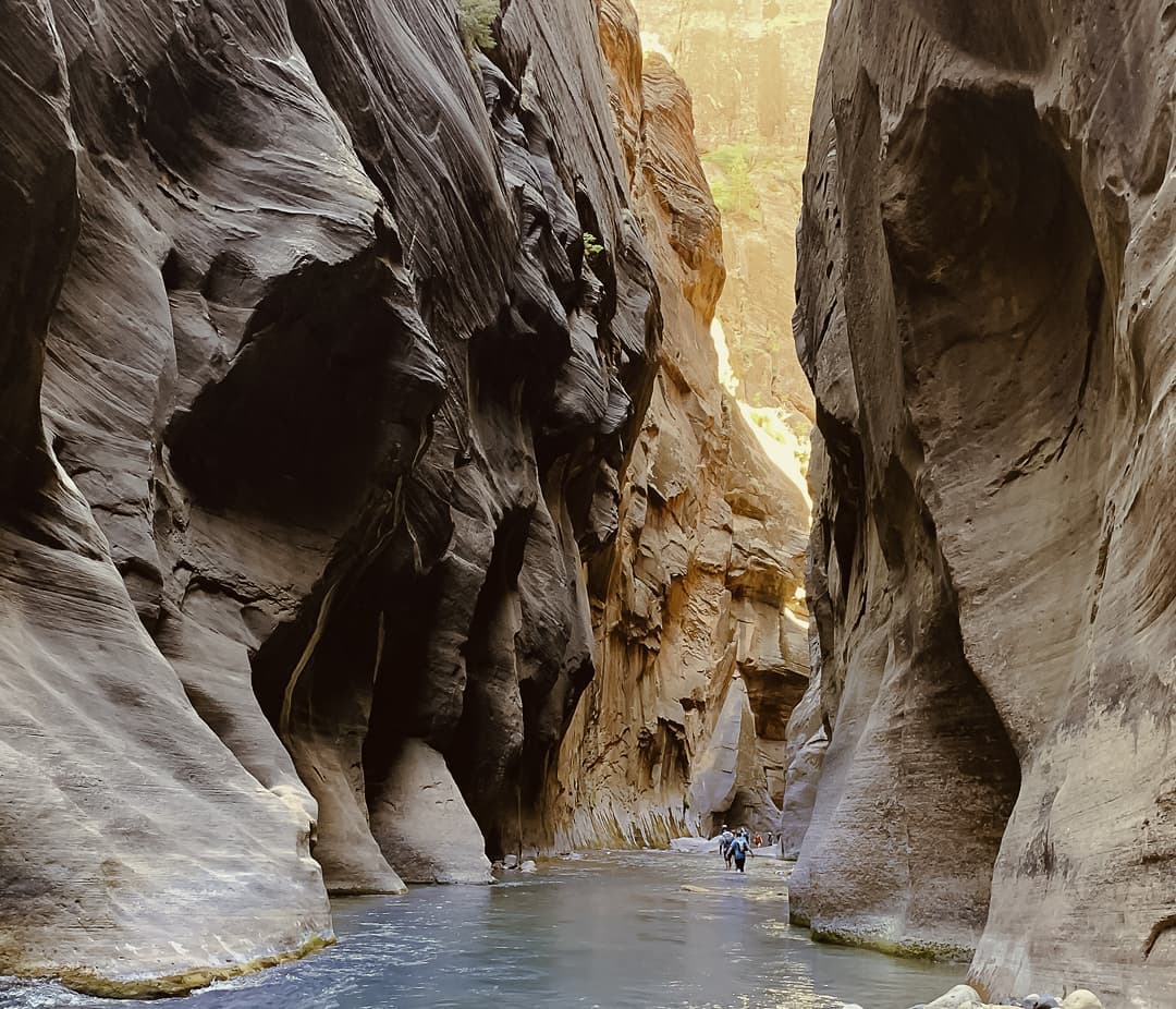 Ils continuent leur périple vers le parc national de Zion, situé dans l’Utah, qu’ils qualifient de mémorable. En plein désert, le vent et la rivière ont creusé au fil de millions d’années des reliefs impressionnants. Ils ont pu les admirer d’en haut, grâce à la randonnée d’Angels Landing le long d’un crête abrupte qui offre une vue incroyable sur la vallée, puis d’en bas lors du trekking des Narrows, les pieds dans la Virgin river et entourés des falaises du canyon. La nuit tombée, ils trouvent un endroit tranquille pour camper dans leur coffre douillet.