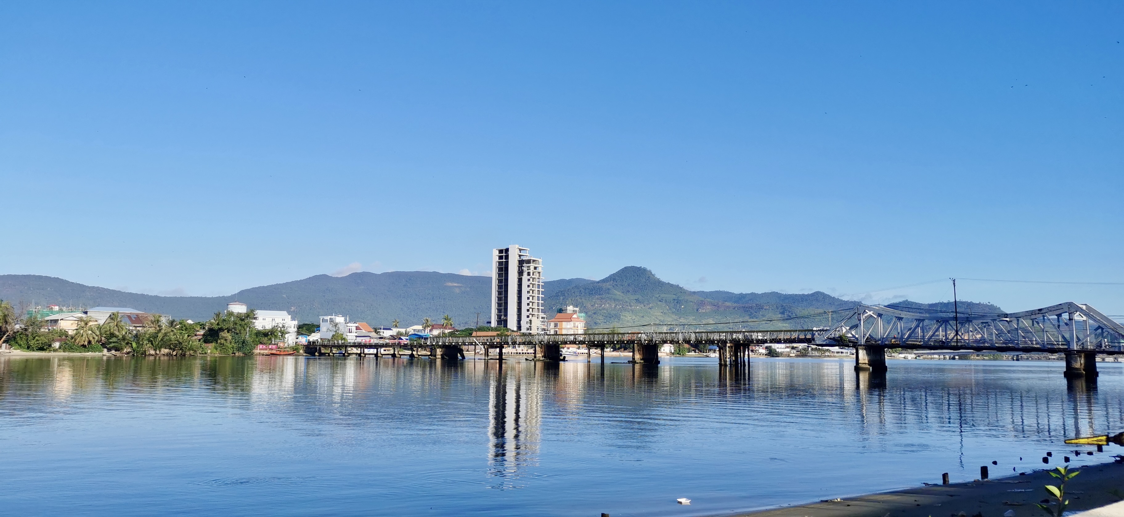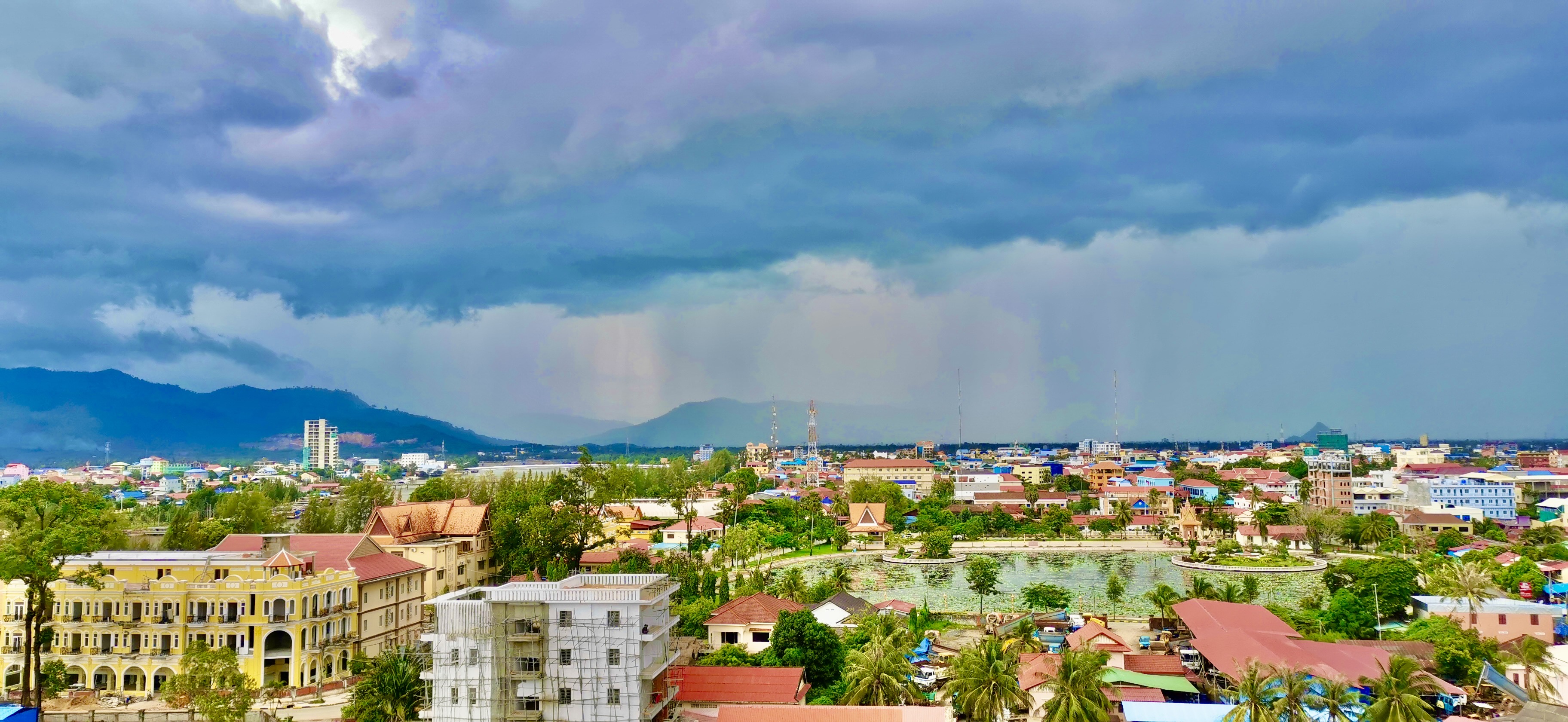 Après 1 mois et demi passé sur cette île magique du sud du Cambodge, le 1er mai, mon groupe d’amis, tous des voyageurs solos rencontrés sur l’île, décide de rejoindre une ville cambodgienne prisée des backpackers et des expats : Kâmpôt. Je les suis. C’est donc une trentaine d’entre nous qui rejoint le continent en bateau puis qui voyage dans un bus datant d’une autre époque pour parcourir les 70 kilomètres qui séparent l’embarcadère de Kâmpôt. Longeant le majestueux massif du Bokor dont le sommet baigne dans de fins nuages gris et sous une pluie froide, nous arrivons finalement dans une auberge de jeunesse située au bord de la rivière qui traverse Kâmpôt : High Tide.