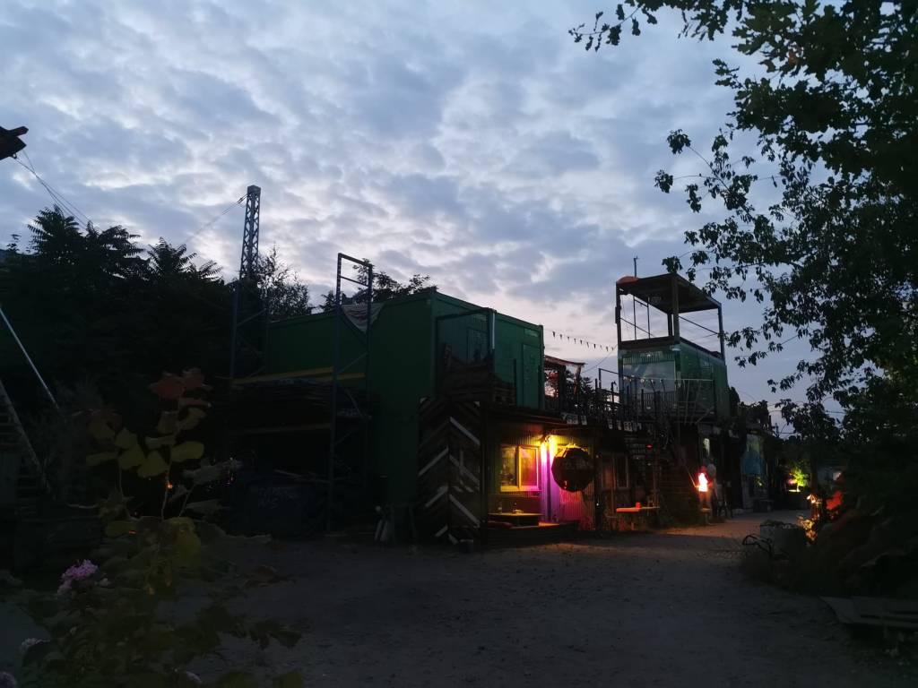 Les gens qu’on a aidé la semaine passée avec les palettes organisent un mini festival qui est en fait l’anniversaire de leur lieu culturel. En fait c’est comme un skouate, mais beau, en extérieur au bord de la ligne de train avec des containers. Sur Google on peut lire : « En 2020, diskoBABEL e.V. lance un terrain d’expérimentation urbain pour les visions de l’art libre. Avec de nombreux acteurs, nous poursuivons une expérience d’apprentissage et de création en commun. Une structure expérimentale pour remettre en question les routines artistiques, culturelles et sociales – la disco Babel » ( https://www.diskobabel.de/).